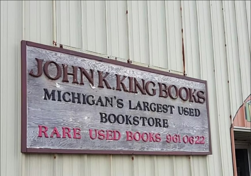 Join us for a trip to Michigan’s largest bookstore — truly a sight to behold. This former glove factory has over 1,000,000 volumes on four floors. If we can’t visit a furniture warehouse, this is the next best thing!